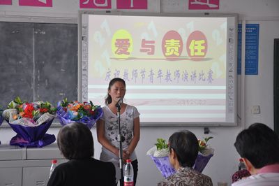 9月9日下午,實(shí)驗(yàn)中學(xué)為了慶祝第27個教師節(jié),舉行了“愛與責(zé)任”青年教師演講比賽。此次比賽學(xué)校邀請到了付繼閩、左永揚(yáng)、楊香芬、宿聰玲等7位德高望重的退休教師做評委。演講中,8位青年教師結(jié)合學(xué)校老師們的先進(jìn)事例和自己教育教學(xué)中的親身經(jīng)歷,激情詮釋了“愛與責(zé)任”的真正內(nèi)涵:愛心至上,勤奮工作,樂于奉獻(xiàn)。他們精彩的演講,引發(fā)了在座老師們的共鳴,大家都深刻感受到了作為教師的光榮與自豪,深刻感受到了教師的責(zé)任感和使命感。經(jīng)過激烈角逐鄧華、張艷萍、陳麗萍老師獲得了演講比賽的一等獎。