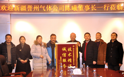 1月6日上午,新疆譽(yù)州氣體制造有限公司董事長陳曦、總經(jīng)理張軍英一行三人專程來到我公司,送來一面錦旗:技術(shù)精湛,誠信服務(wù)。我公司領(lǐng)導(dǎo)單金銘、謝波等熱情迎接了客人,雙方進(jìn)行了友好交流。