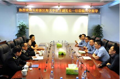 4月9日下午,成都天府新區(qū)海關(guān)李佐才副關(guān)長(zhǎng)一行,在簡(jiǎn)陽(yáng)市商務(wù)和投資促進(jìn)局機(jī)關(guān)黨委書(shū)記黃偉等的陪同下,來(lái)到我公司參觀調(diào)研、指導(dǎo)工作。