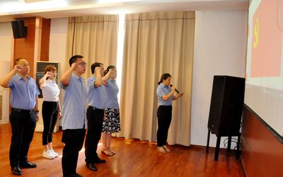 會(huì)議首先進(jìn)行了新黨員入黨宣誓儀式,在莊嚴(yán)的黨旗面前,全體與會(huì)黨員也與5名新黨員一起重溫了入黨誓詞。