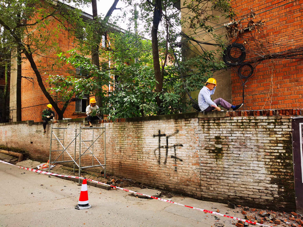 由于該區(qū)域內(nèi)的新38、39幢不屬于改造范圍,將在小公園內(nèi)單獨(dú)開辟人行通道,以保證新38、39幢住戶的出入和正常生活。打圍后將在拆移該區(qū)域內(nèi)水電氣表、管道、通訊電纜等,以及物業(yè)公司搬遷值班室、辦公室、倉庫、工棚等設(shè)施后,對(duì)區(qū)域內(nèi)舊房進(jìn)行拆除。