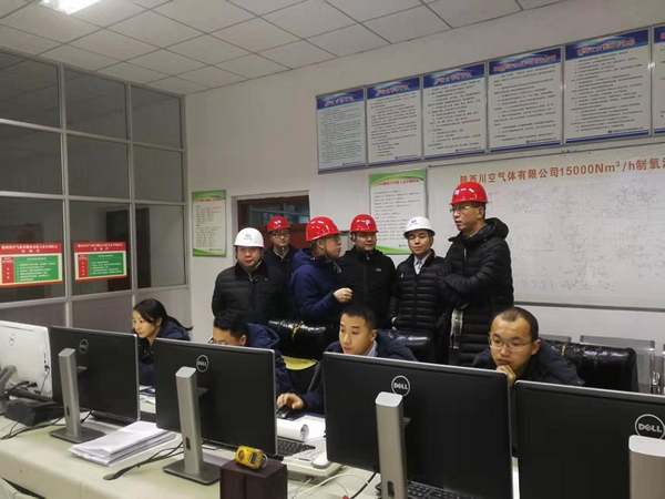 會(huì)議召開前,在陜川公司董事、總經(jīng)理謝銀宇的陪同下,全體董事會(huì)成員對(duì)公司廠區(qū)內(nèi)15000Nm3/h空分裝置的主體設(shè)備、中控室、后備系統(tǒng)液體儲(chǔ)槽和托管的略鋼6500Nm3/h空分裝置區(qū)域進(jìn)行了全面視察,現(xiàn)場(chǎng)聽(tīng)取了技術(shù)人員對(duì)生產(chǎn)運(yùn)行、操作、質(zhì)量把控等工作介紹。