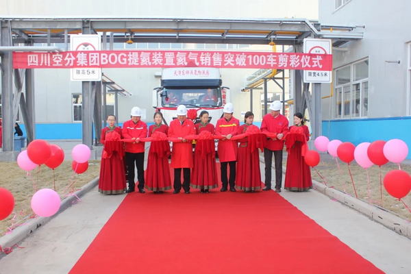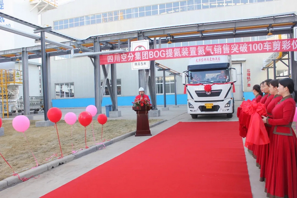 春回三月人潮聚,佳績(jī)呈現(xiàn)齊喝彩。3月6日上午9:00,四川空分集團(tuán)自主研發(fā)建設(shè)的國(guó)內(nèi)首套年產(chǎn)百萬(wàn)方級(jí)氦氣的液化天然氣閃蒸氣提氦裝置氦氣銷售突破一百車剪彩儀式在內(nèi)蒙古興圣氦氣生產(chǎn)區(qū)隆重舉行,這是繼2020年8月11日順利完成首輛高純氦管束車充裝后取得的又一可喜可賀的成績(jī)。