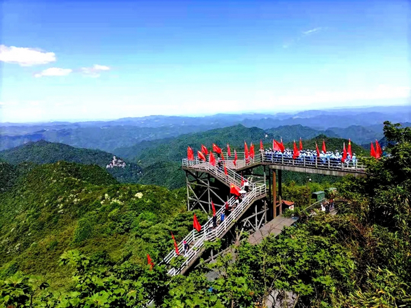 一首《憶秦娥·婁山關(guān)》曾讓多少人為之感嘆!沿著崎嶇的山路,我們乘車來到婁山關(guān)的頂峰西風臺。獵獵西風卷起漫天紅旗,千里群山盡收眼底。“雄關(guān)漫道真如鐵,而今邁步從頭越”一股豪邁之氣油然而生。