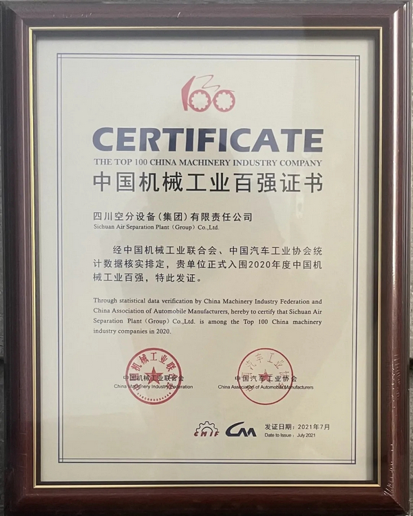 經(jīng)中國機械工業(yè)聯(lián)合會、中國汽車工業(yè)協(xié)會統(tǒng)計數(shù)據(jù)核實排定,我公司正式入圍2020年度中國機械工業(yè)百強(位列第78位)。