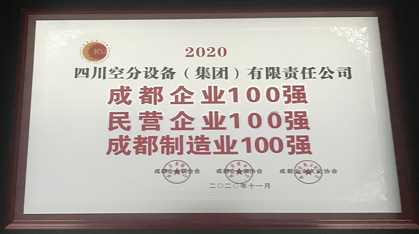 我公司榮獲2020年度“成都百強(qiáng)企業(yè)”