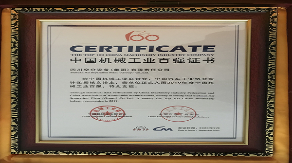 我公司被評為2019年中國機(jī)械工業(yè)百強(qiáng)企業(yè)